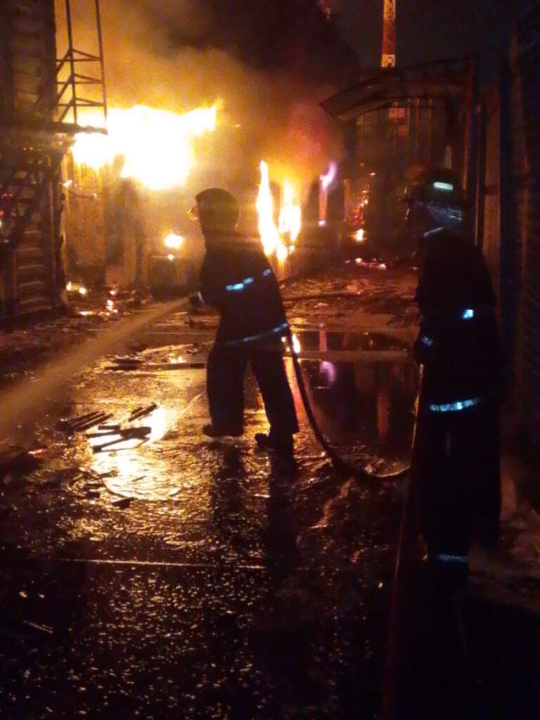 While the fire was still raging at the time of the report due to the highly combustible materials involved, joint firefighting efforts continued throughout the day to bring it fully under control.