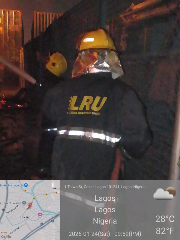 The Lagos State Emergency Management Agency (LASEMA) Eagle Squad, working alongside the Lagos State Fire Service, LRU Fire, and Nigeria Police, swiftly intervened to prevent the blaze from spreading to neighbouring structures.