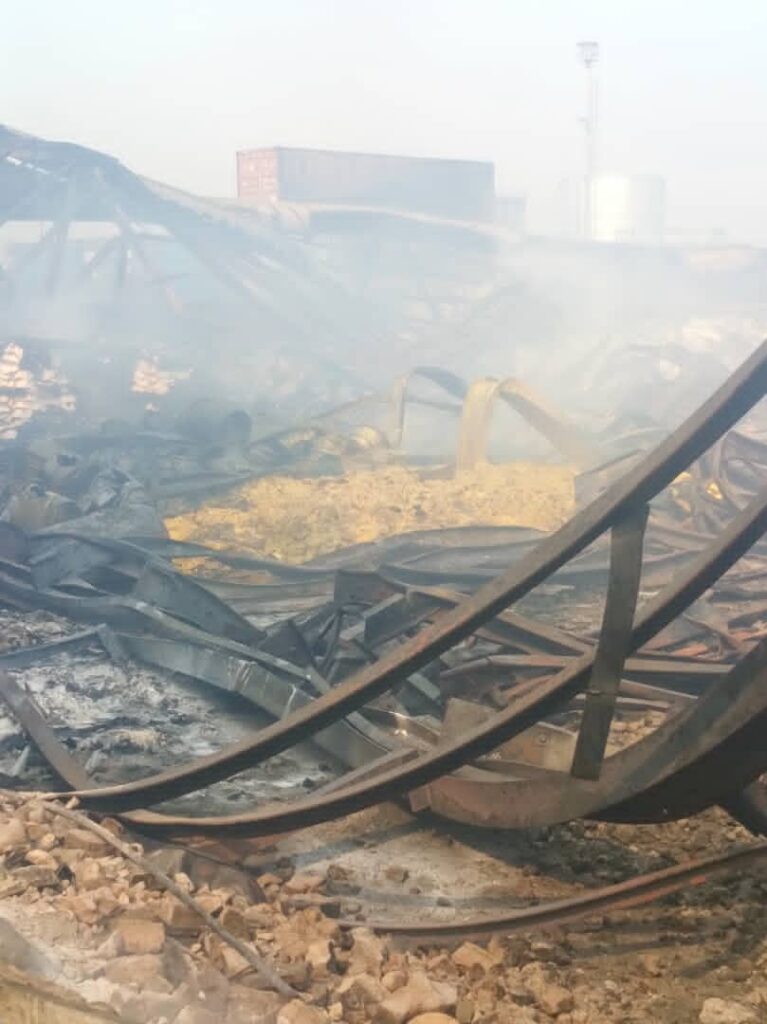 While the fire was still raging at the time of the report due to the highly combustible materials involved, joint firefighting efforts continued throughout the day to bring it fully under control.