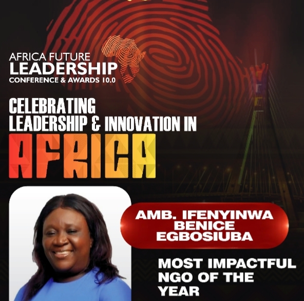 Ambassador Ifenyinwa Bernice Egbosiuba,the Founder & President of the Virtuous Widows International Foundation (VWIF) has been named the recipient of the Most Impactful NGO of the Year Award, courtesy of Africa Future Leadership and Conference Awards (AFLCA).